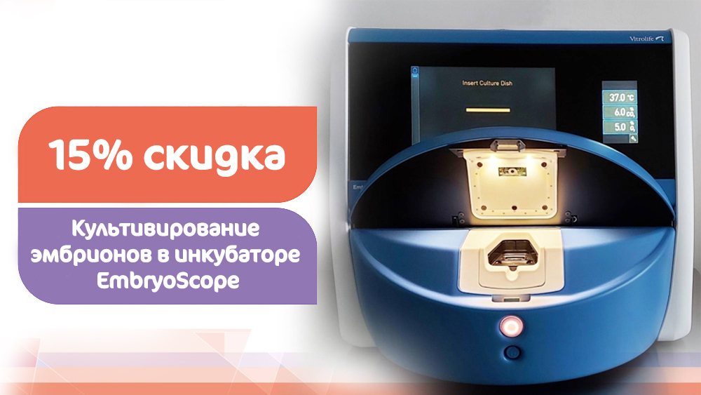 До 31 марта 2026 года у вас есть уникальная возможность воспользоваться передовой технологией культивирования эмбрионов в инкубаторе EmbryoScope по специальной цене - 34 000 рублей вместо 40 000 рублей!