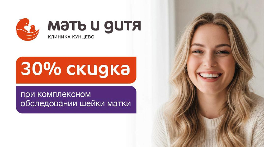 Уважаемые пациенты! Мы рады представить вам специальное предложение: скидку 30% на комплексную программу обследования шейки матки.