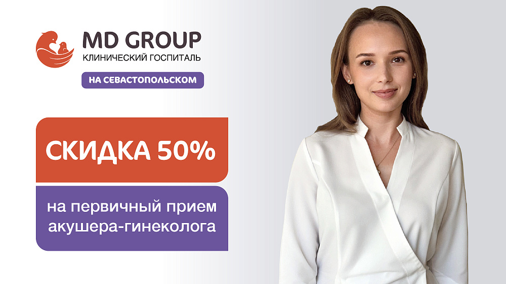 До 30 ноября 2025 года в выходные и праздничные дни действует акция: пациентам, впервые обращающимся в КГ «MD GROUP», предоставляется скидка 50% на первичный прием врача акушера-гинеколога.