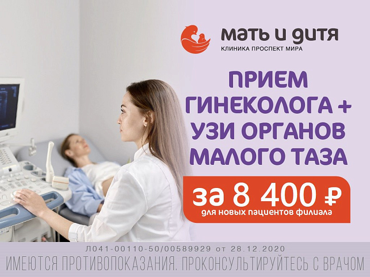Мы рады представить вам уникальную акцию: консультация акушера-гинеколога + УЗИ органов малого таза всего за 8400 рублей!