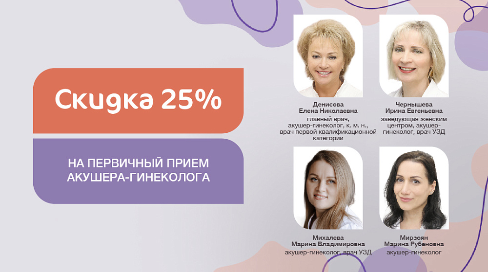 Здоровье женщины требует особенного внимания в любом возрасте. Клиника «Мать и дитя» Юго-Запад приглашает вас первичный прием акушера-гинеколога со скидкой 25%.