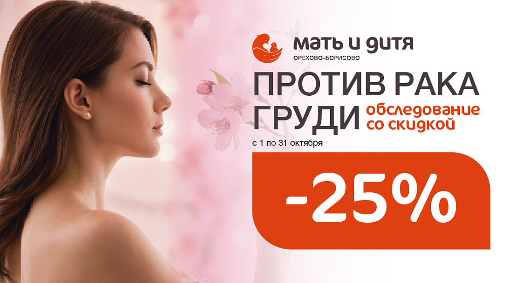 Клиника «Мать и дитя» Орехово-Борисово участвует во всемирной акции «Против рака груди» и предлагает скидку 25%!