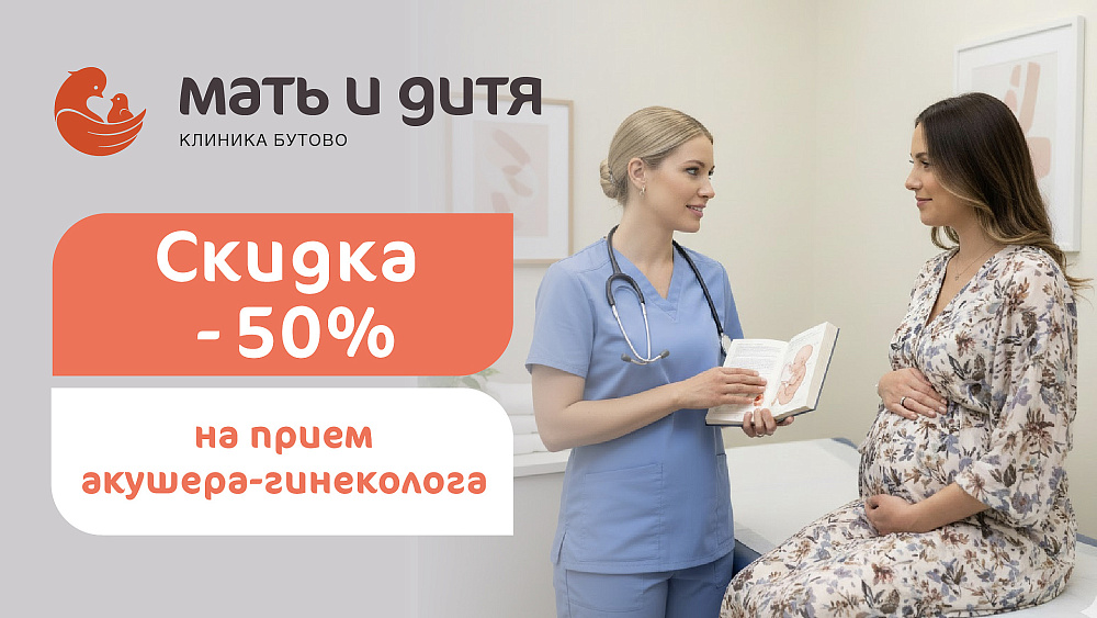 Здоровье женщины требует особенного внимания в любом возрасте. Клиника «Мать и дитя» Бутово приглашает вас на первичный прием акушера-гинеколога со скидкой 50%.