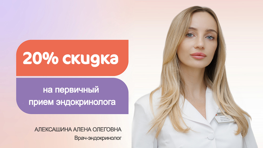 В клинике «Мать и дитя» Орехово-Борисово действует акция на первичный прием врача-эндокринолога Алексашиной А.О.: