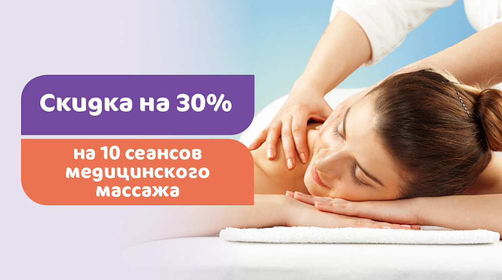 Дорогие пациенты, в клинике «Мать и дитя» Солнцево вы можете записаться на курс массажа со скидкой 30%, состоящий из 10 сеансов.
