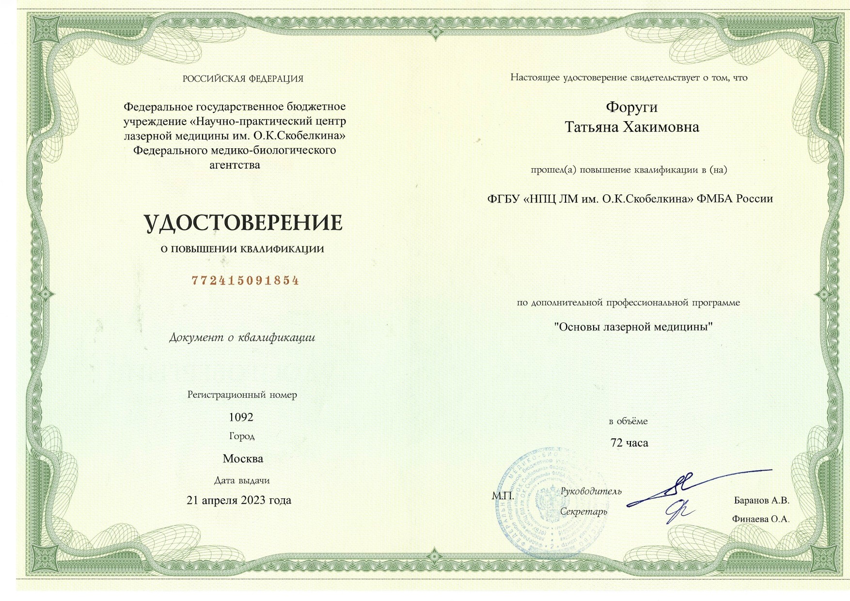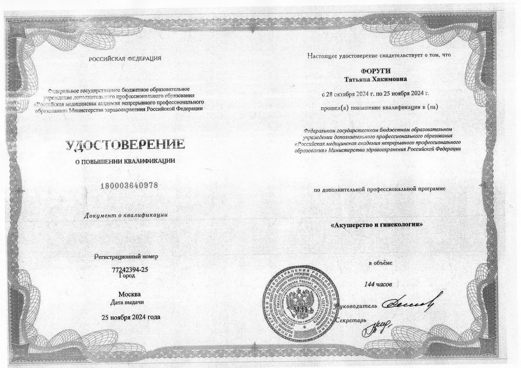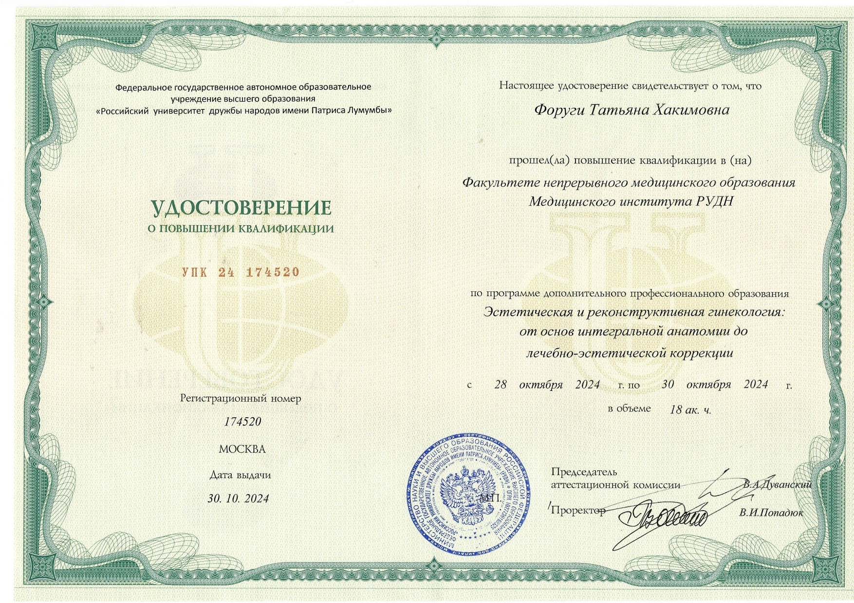 Прием гинекологических пациенток, ведение беременности, лечение инфекций, передающихся половым путем, лечение патологии шейки матки радиоволновым методом, радиоволновое удаление кондилом, папиллом, подбор гормональной контрацепции и менопаузальной громональной терапии, коррекция нарушения цикла. Введение и удаление ВМК, в том числе "Мирена", "Кайлина", введение и удлаение гормонального импланта "Импланон". Эстетическая гинекология: лазерное омоложение влагалища и вульвы, PRP-терапия, коррекция недержания мочи введением филлера, нитевой лифтинг промежности. Гистероскопия, полипэктомия. УЗИ органов малого таза, фолликулометрия, УЗИ мышц тазового дна, УЗи в первом триместре беременности, УЗ-цервикометрия