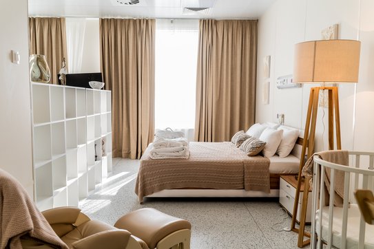 В наших родильных домах также предусмотрены уютные комнаты отдыха для родных, и близких, решивших разделить с будущей мамой момент первой встречи с малышом.