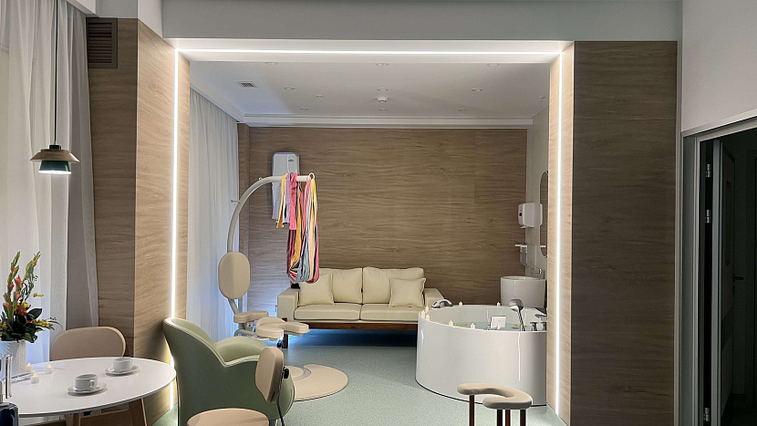 Комфортабельные индивидуальные родильные боксы оборудованы мониторами слежения за состоянием здоровья матери и плода в родах, а также всем необходимым для свободного поведения в родах – просторной душевой кабиной, гидромассажной ванной, фитболами для релаксации.