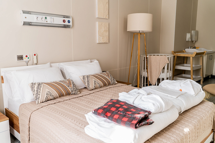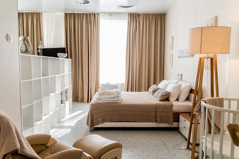 В наших родильных домах также предусмотрены уютные комнаты отдыха для родных, и близких, решивших разделить с будущей мамой момент первой встречи с малышом.